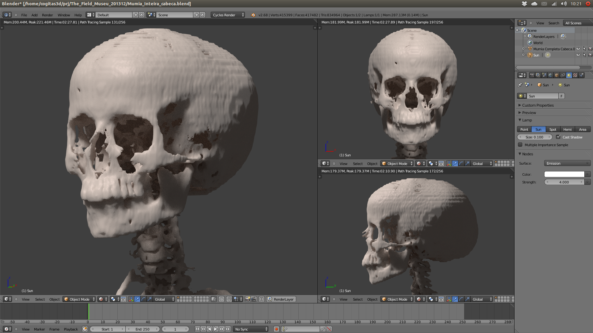 Passada a empolgação inicial, a vida voltou ao normal, mas o desejo de reconstruir faces não foi embora. Há alguns dias atrás, escrevendo um artigo sobre uma múmia que extraí de um vídeo, tive que recorrer ao material original postado no Vimeo, (postado pelo The Field Museum) para me lembrar em que parte se encontraram as fatias de tomografia correspondentes aquela múmia.