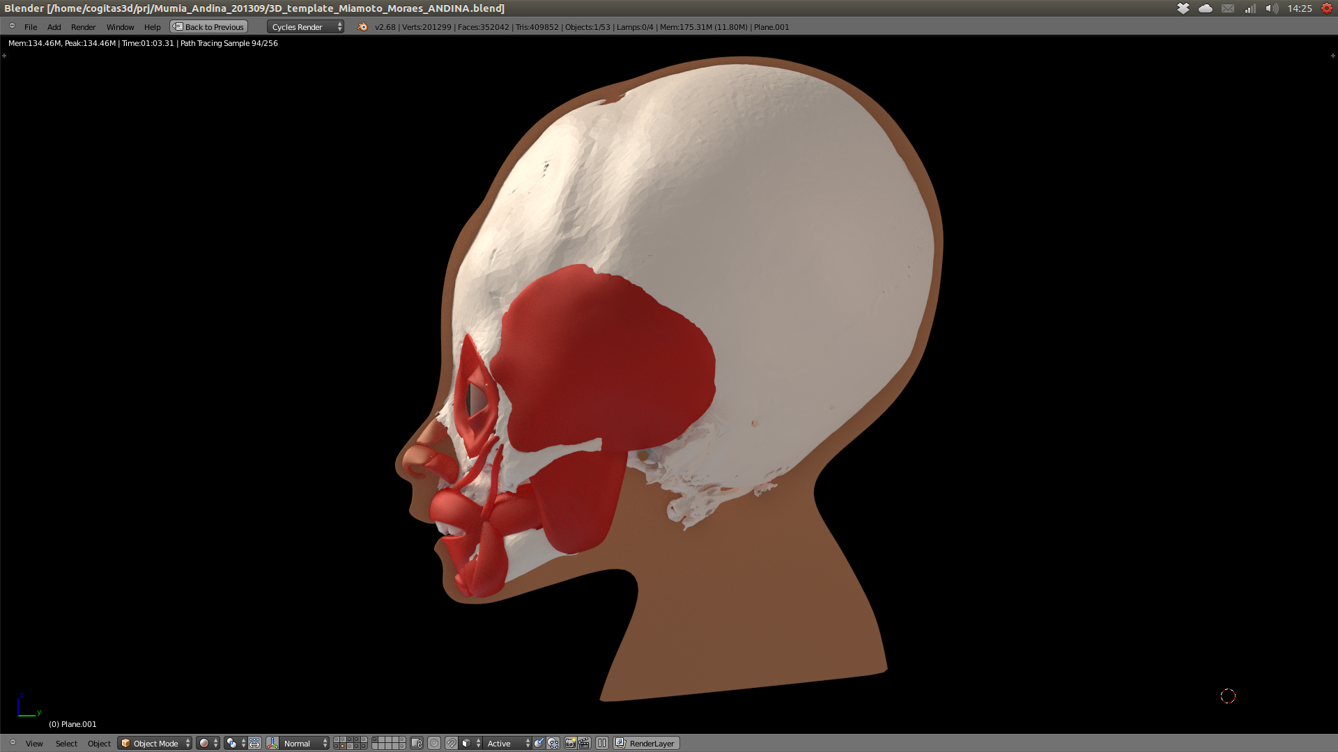 Voltando ao Feliz Dia da Múmia! há alguns dias recebi os bilhetes aéreos por e-mail e rapidamente comecei a separar as imagens para compor os slides que serão apresentados na mesa redonda onde discutiremos o projeto. Depois de tanto tempo mexendo com isso ainda fico inspirado e ansioso para que o dia chegue logo e eu possa mostrar aos espectadores as etapas da modelagem. Mais do que ansioso por apresentar, também estou em relação ao que os outros integrantes vão mostrar. Será a primeira vez que participarei de um acontecimento onde todos os pesquisadores que desenvolveram o processo vão falar de sua parte compondo um cenário completo de como as coisas se efetivaram.