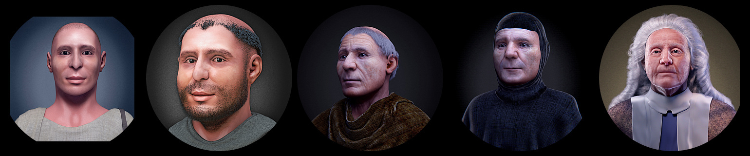 Para esse evento fui incumbido de reconstruir 27 faces, 22 delas relacionadas a evolução humana: